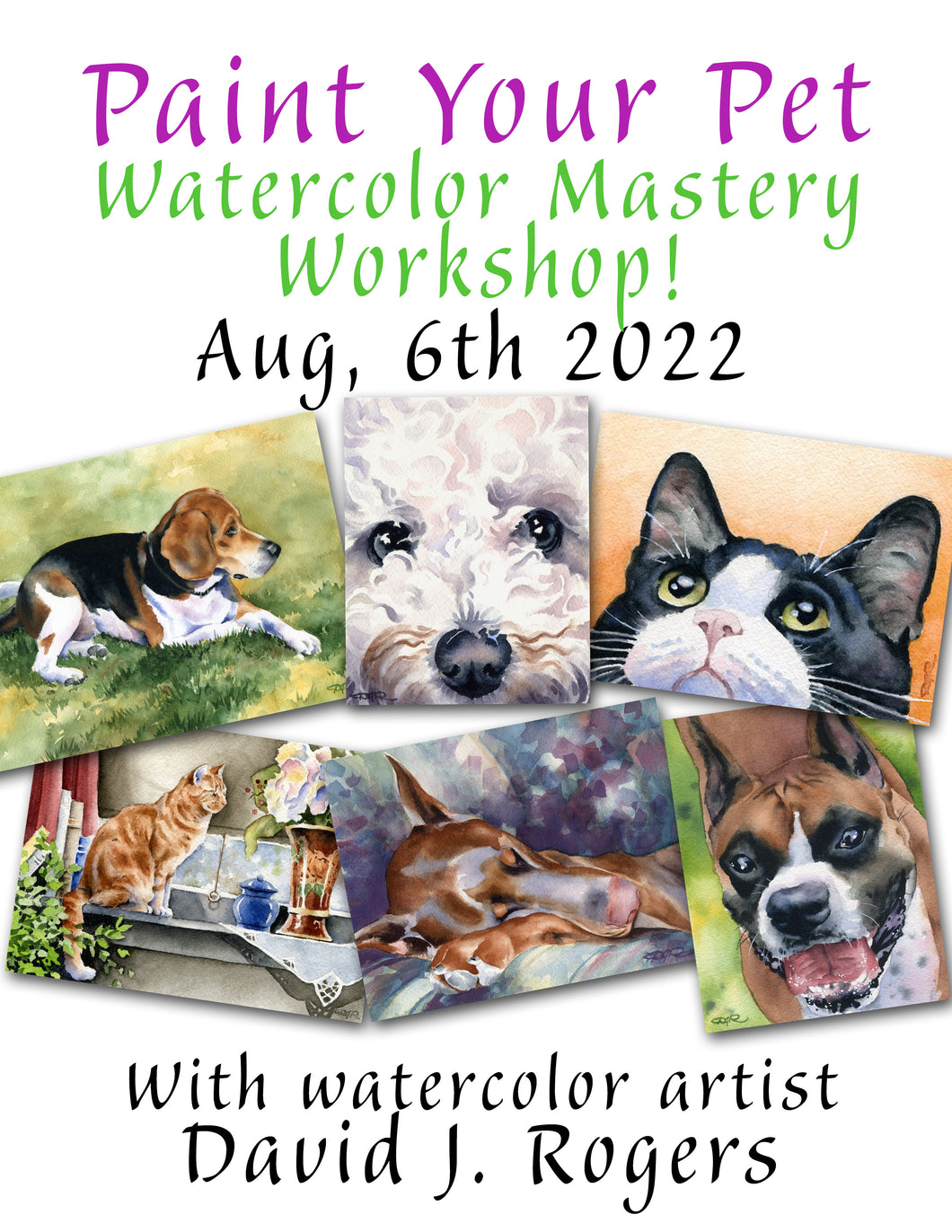 This is a workshop designed for artists of all skill levels. Here's just some of what we'll be covering in this Watercolor Mastery Workshop "Paint Your Pet"...